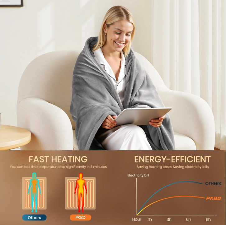 With 6 adjustable heating levels, you can easily choose the perfect temperature to match your comfort needs. The built-in 4-hour auto shut-off ensures safe use during naps, nighttime sleep, or extended lounging on the couch or bed.